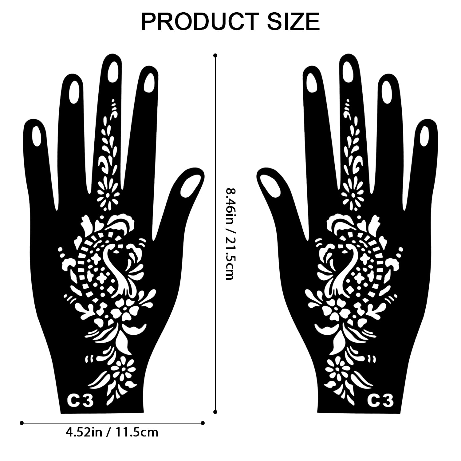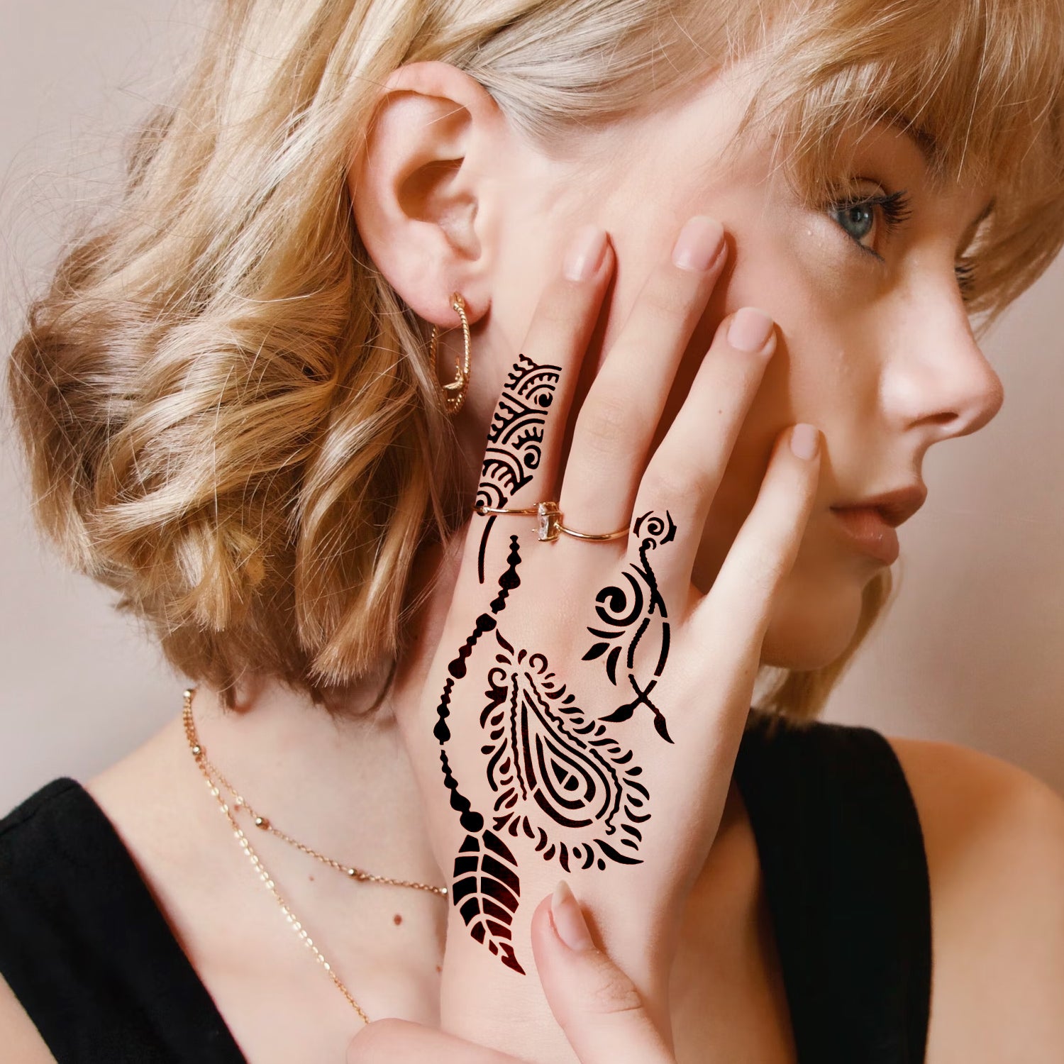 - [Multiple Designs]- 8 different Henna Stecncil Tattoo Designs for both hands could be adapted to different occasions as you wish!